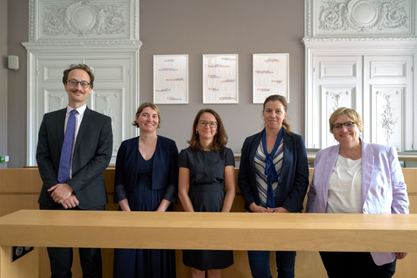 De gauche à droite : Alexandre Derollepot (4e chambre) ; Alexandra Bedelet (vice-présidente du TA et présidente de la 5e chambre) ; Anne Rogniaux (3e chambre) ; Fanny Galtier (1re chambre) ; Emmanuelle Conesa-Terrade (juge unique).